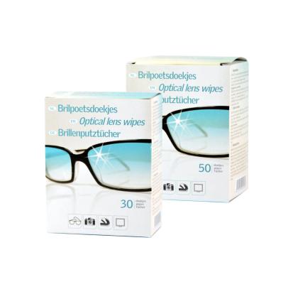 Optical lens cleaning wipes in personalised retail box
